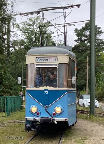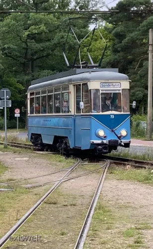 Thomas mit der alten Straßenbahn bin ich heute gefahren, aber ich hab dich nicht auf dem Balkon gesehen