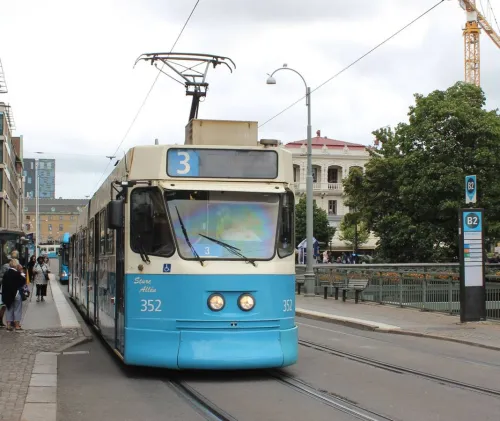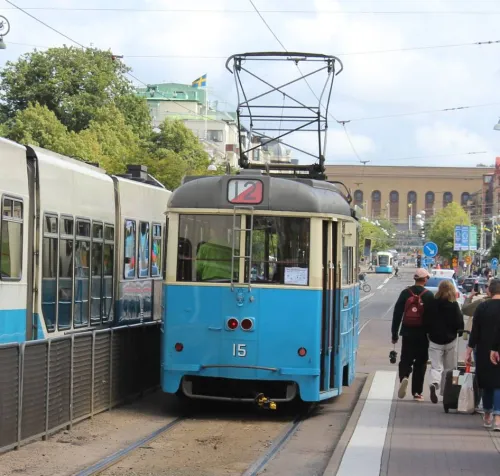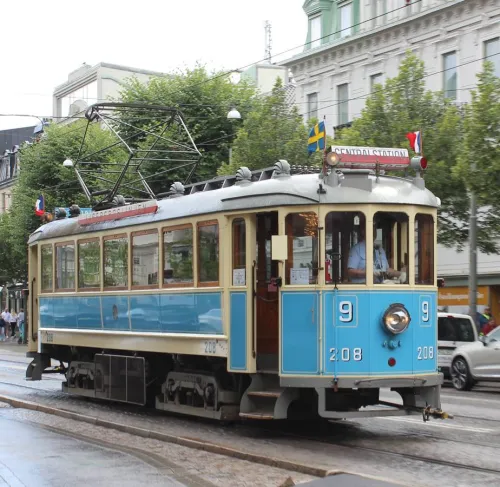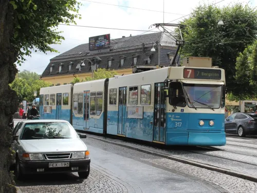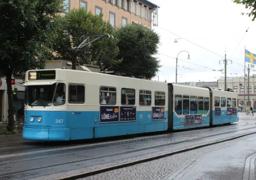Gestern in Göteborg gesehen: Die historischen Fahrzeuge ASEA Mb01 Nummer 208 von 1928 und Hägglund M23 Nummer 15 sowie die aktuell in Betrieb stehenden M31 #303, 317, 327, 336, 347, 349, 352, 359, 371, 374 und 379, M32 Ansaldo Sirio #429, 441 und 463 sowie M33 Bombardier Flexity Classic #492, 494 und 505: