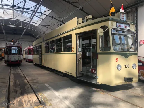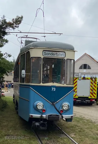 Hier auch noch 2 Bilder unserer uralt historischen Straßenbahn. Auch diese fährt ab und zu mit dazugehörigem Beiwagen durch die Stadt.
