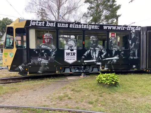 KTNF6 Triebwagen 29, er wirbt für die Feuerwehr, hat aber noch keine Zulassung: