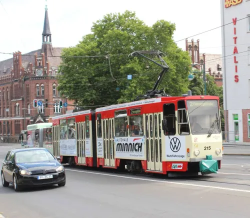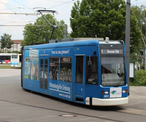 Zwei kleine Sichtungen aus Dessau und Frankfurt (Oder), Bombardier Flexity Classic NGT6DE No. 301 und Tatra KT4DM No. 215:
