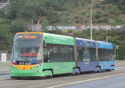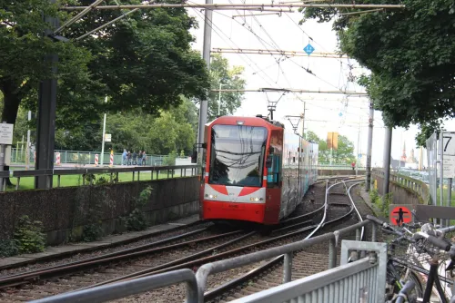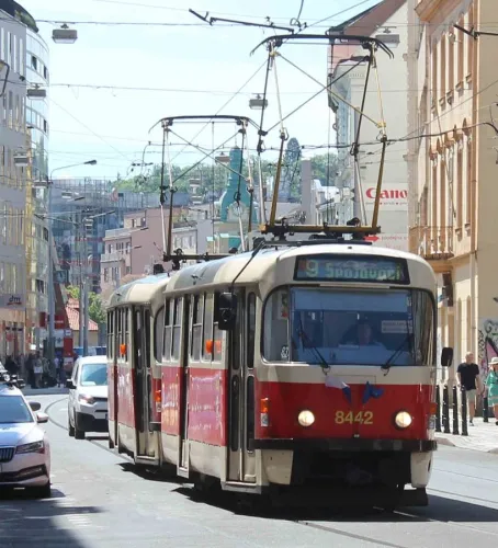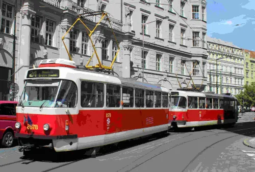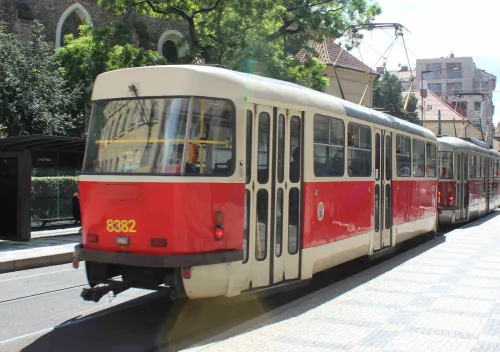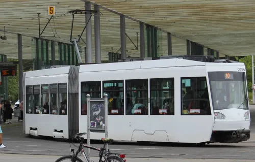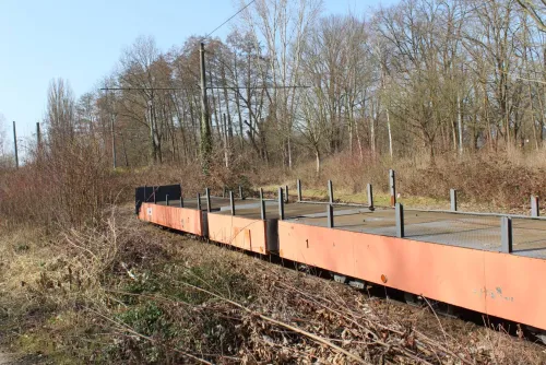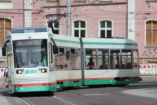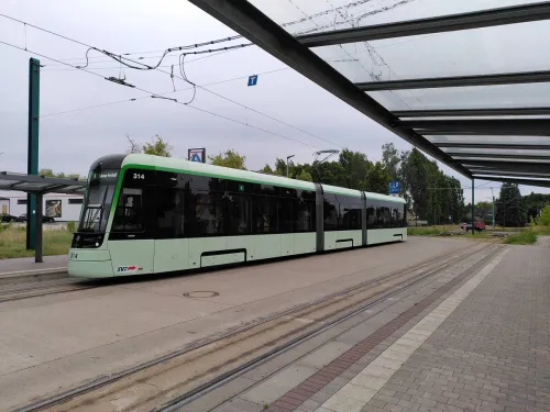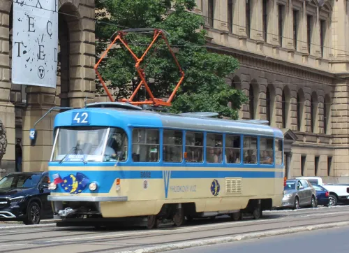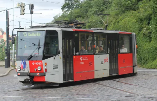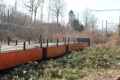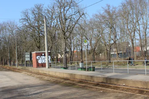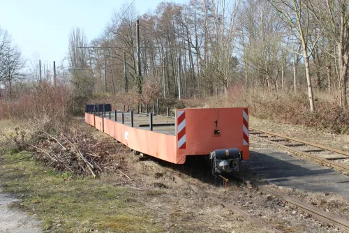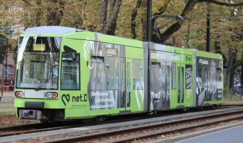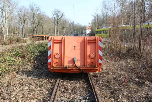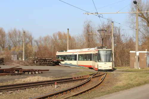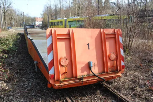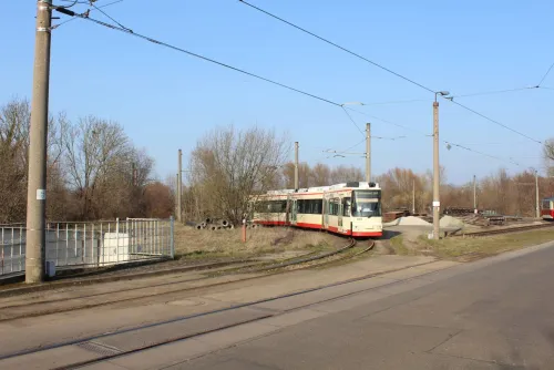 Eine Tatra KT4DM sah ich dann doch, und zwar über den Zaun auf dem Gelände des Betriebshofs in Neuberesinchen. Es handelt sich um Nummer 218 von 1987: