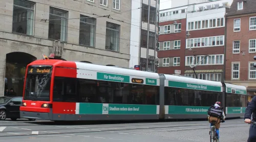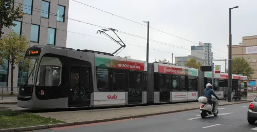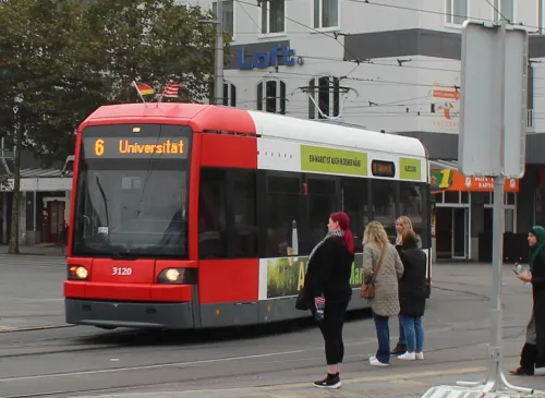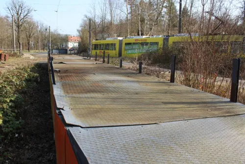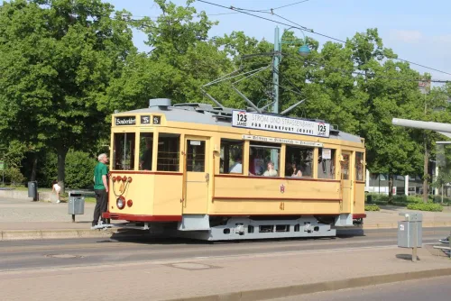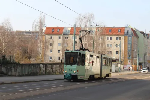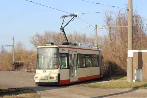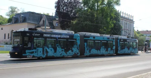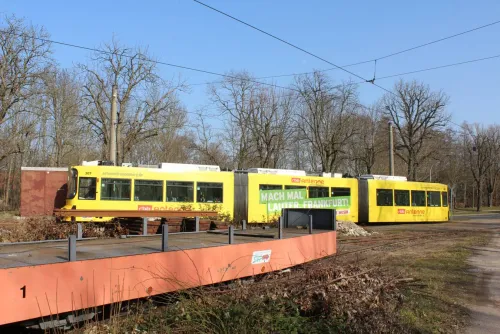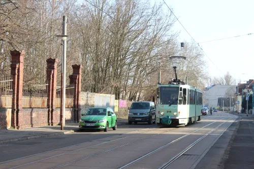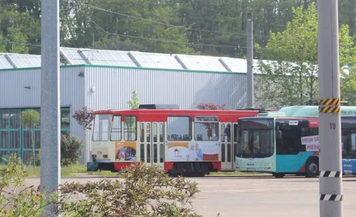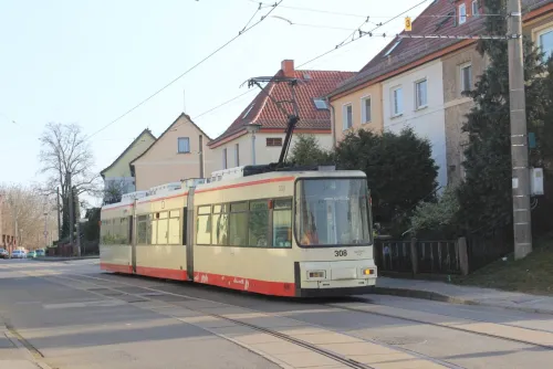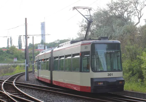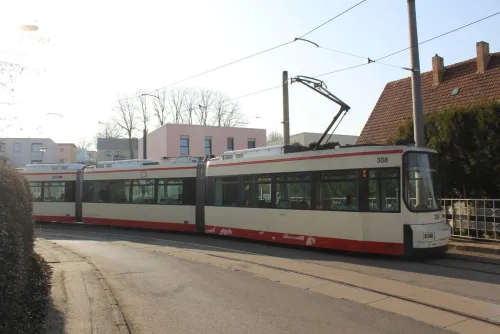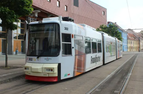 Der Linienverkehr wurde von den GT6M aufrechterhalten, ich traf 301 in der Lindenstraße und am Mühlenweg (2 Bilder), 302 an der Europa-Universität sowie 306 an der Heilbronner Straße: