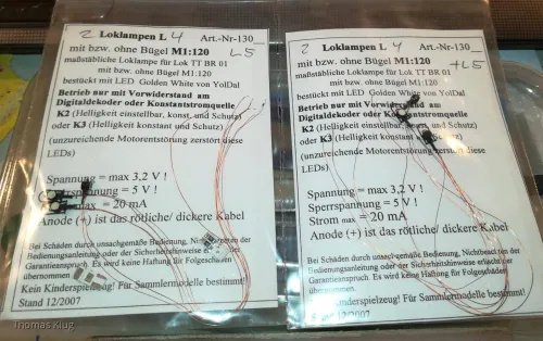 Du machst es noch besser mit den Lampen als ich. Ich hab die originalen genommen, weiß aus gemalt, eine warmweiße Led ein gesetzt und mit transparentem Epoxy aus gegossen. auch die obere damit sie ordentlich gleich leuchten. Hinten die Led direkt hinter den Lichtleiter geklebt. macht was her und jetzt auch puff puff. Sieht so aus als hätteste sie auch kurz gekuppelt?