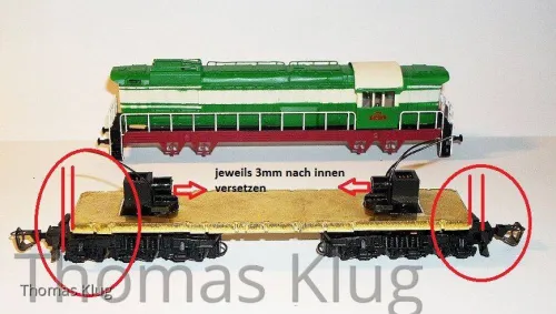 Ich werde probieren ob die Drehgestelle der 120 passen, da diese die Schäfte außermittig haben und so die Drehgestelle weiter nach innen kommen, allerdings habe ich keine Drehgestelle vorrätig und bei Tillig sowie im MBS sind sie derzeit nicht verfügbar.