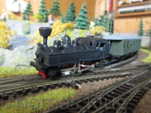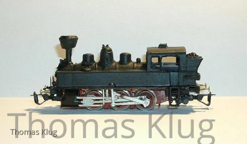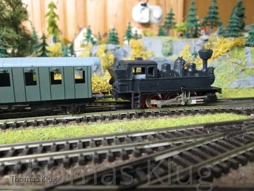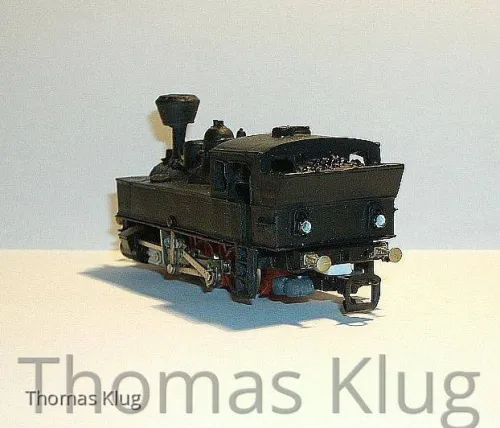 Als Basis diente hierfür ein Gehäuse einer ELNA 5 mit seitlichen Wasserkästen und hohem Kohlenkasten (von Ingolf Hass) und ein Fahrwerk einer BR 81 / 92 von Tillig.