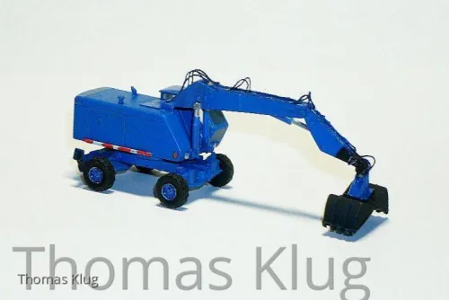 Da der Bagger auf dem Flachwagen seinen Platz erhalten soll, musste der Arm in einem anderen Winkel ausgelegt werden, demzufolge wurden auch die Hydraulikzylinder verlängert bzw. eingekürzt und die Greiferschaufel in einem anderen Winkel angesetzt.