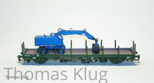 Mir gefallen auf dem anderen Waggon die Ölfässer von Schell. Wie kamen denn die in die DDR? :48: Ansonsten schöne Sache. So nen Bagger könnte evtl auch dann am neuen kleinen Güterverladegleis bei mir stehen. :700: