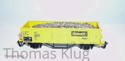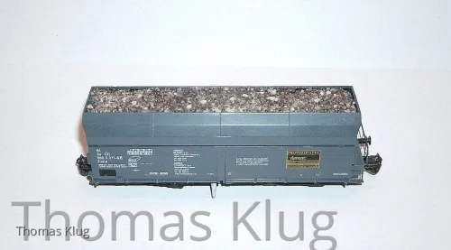 das Ladegut ist so gemacht, dass es herausnehmbar ist, auf Styrodur habe ich den Gleisschotter von Auhagen gestreut nachdem ich das Styrodur mit Ponal eingestrichen hatte.