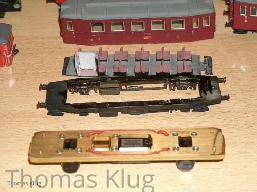 Der "Hurvinek" wurde endlich mit einem ordentlichen (Unterflur) Antrieb ausgestattet und bekam eine Inneneinrichtung, damit die Preiserleins sich auch ordentlich auf die Holzbänke fläzen können...