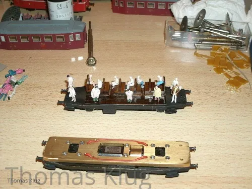 Beim Beiwagen wurde eine Inneneinrichtung eines preuß. Abteilwagens verwurstet und beim Triebwagen, auf Grund der Rahmenplatte, wurde nur aus Pappe gebaut.