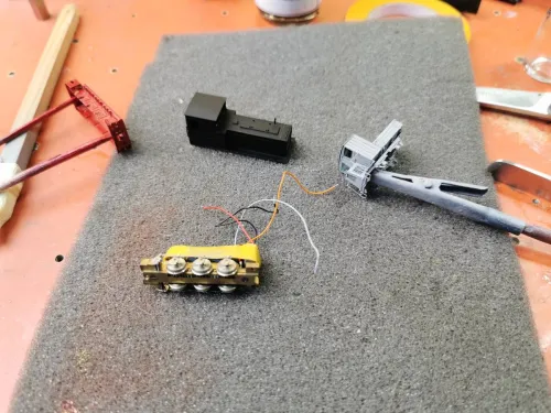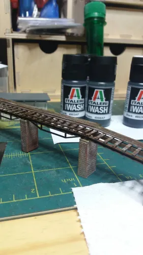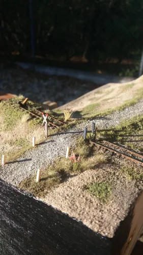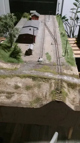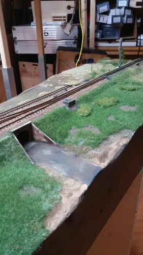 heute hiess es saegen, schleifen, spachteln. Nun ist das erforderliche Zwischenmodul zumindest im Rohbau fertig. Thematisch geht es dann aus dem Tunnel ueber eine Flussbruecke in den Bahnhof...Dort endet nun die Strecke. Frueher ging es mal weiter...