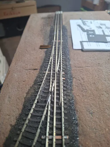 Nun soll es auch einmal hier weitergehen. Keine neuen Module eher altes verbessern. Ein Problemkind war auf dem Abzweigmodul zur Neissebruecke die Peco-Bogenweiche. Also raus damit und eine Fake-Bogenweiche eingebaut...