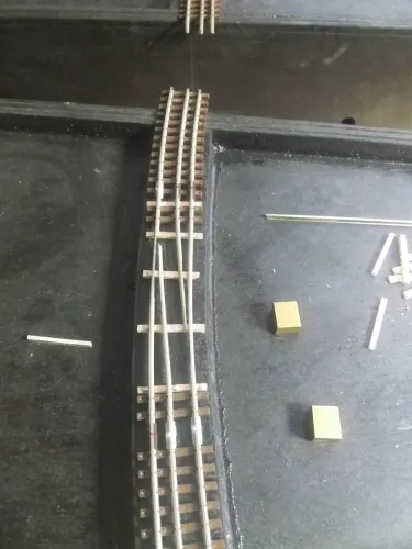 Nun soll es auch einmal hier weitergehen. Keine neuen Module eher altes verbessern. Ein Problemkind war auf dem Abzweigmodul zur Neissebruecke die Peco-Bogenweiche. Also raus damit und eine Fake-Bogenweiche eingebaut...