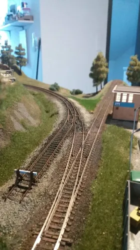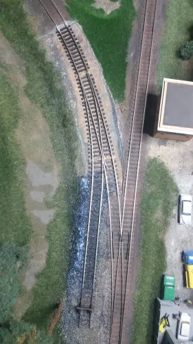 Wobei nur die erste Weiche - Einfaedelung TTe /TT funktionsfaehig ist. Die zweite ist eine Tillig TT Weiche und hier wurde einfach das TTe Gleis eingefuegt.