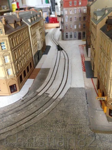 Und es ging fleißig weiter mit dem Straßenbau. Nun noch die weiche auf Messingherzstück umbauen und fertig Pflastern, dann kann die farbliche Gestaltung erfolgen.
