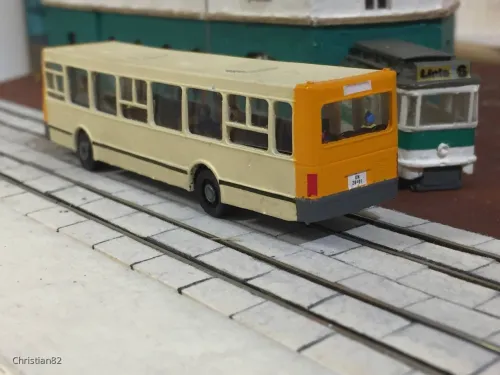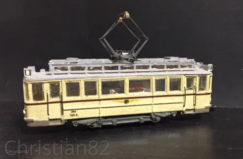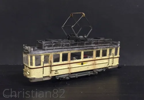 Die farbliche Gestaltung wurde dem Buch „Städtischer Nahverkehr in der DDR“ von Andreas Riedel entnommen. Spiegel und Peilstangen stammen von PTL. Zwar habe ich auch den Innenraum mit Fahrgästen besetzt aber irgendwie sind die Fenster zu klein. Also glaubt mir einfach....