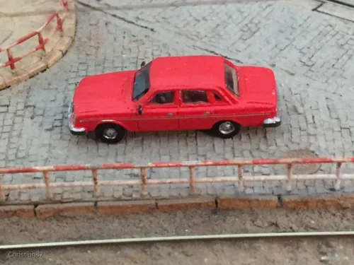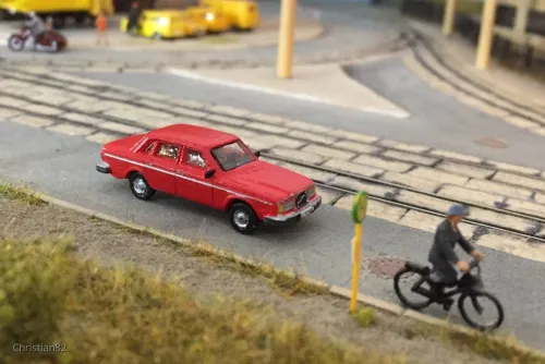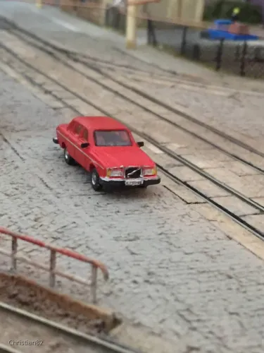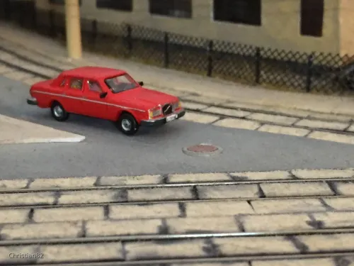 Für ein geplantes aber abgesagtes privates Treffen war die Aufgabe, baue einen Volvo. Also gabs bei mir einen 240er. Den hatte zu DDR Zeiten unser Nachbar und so hab ich ihn aus dem Bausatz von shapeways aus dem Shop von railnscsale gebaut. Die Seitenscheiben sind aus MKK, Front und Heck einzeln eingesetzt.