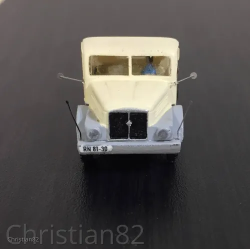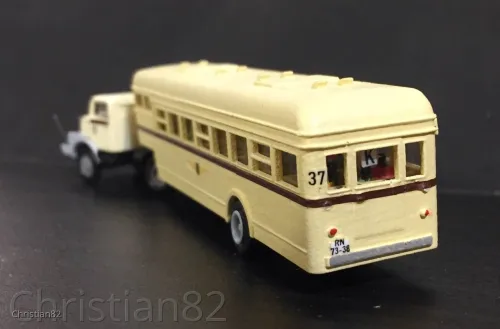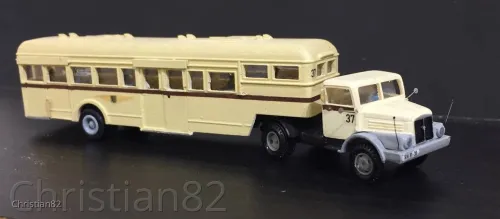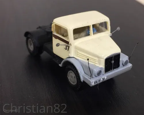Das Vorbild war der DAF-Auflieger, der ursprünglich auf einer Cossley-Maschine 1946 von der niederländischen Staatsbahn gekauft wurde. Diese gelangten über die Wismut 1956 nach Dresden und wurden bis 1964 bereits wieder ausgemustert. Teilweise wurde die Zugmaschine gegen einen H6 getauscht. Und ja, das Gehäuse soll ein H6 und kein S4000 darstellen. Abgesehen davon wäre ein H6 kaum am Markt erhältlich. Und bei diversen Vorbildvergleichen hab ich ich als Halblaie keinen gravierenden Unterschied erkennen können.