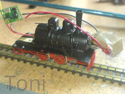 Zumal auch noch ein 2,4GHz Empfänger "herumlag", wurde der Entschluss gefasst, aus den Teilen eine kleine funkgesteuerte Lok, so als "Gag" für gelegentliche Modultreffen zu bauen.