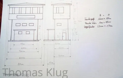 Hier schon mal die Zeichnung zum Stellwerk, welches ich in Anlehnung an Aue 2 bauen werde.