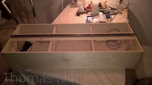 eines von zwei 80 cm Streckenmodulen ist nun über die Weihnachtstage im Rohbau fahrfertig geworden. Nun fehlen nur noch die Büschelstecker damit es mit anderen Modulen elektrisch verbunden werden kann und nun kann der Landschaftsbau erfolgen.