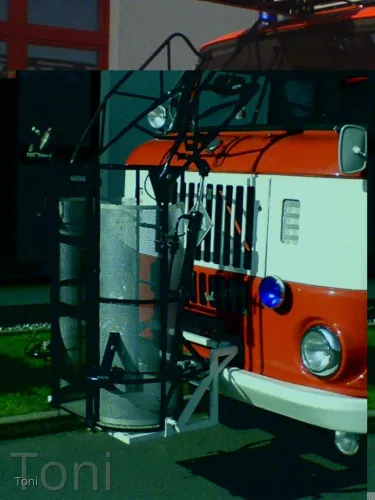 neben der Modellbahn, bevorzugte Epoche DR-IVa, interessieren mich auch die großen Vorbilder der Modellautos. Nicht nur um zu kontrollieren ob der Hersteller alles richtig abgebildet hat, sondern auch um eventuelle Zurüstteile oder Verbesserungen anbringen zu können. Die weißen Streifen wurden auf Verfügung ab 1984 angebracht, was zu beachten ist. Mein Fahrzeug, ein W 50L/LF 16 TS 8, steht noch bei der Feuerwehr Kaufbach (Wilsdruff) im Einsatz und possiert vor dem Lokschuppen Wilsdruff im August 2009.