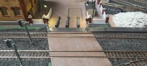 So mal schnell die Antworten auf Euere Fragen. Es sind alte Brawa Schranken in N. Werden schon ewig nicht mehr hergestellt. Von einem Verkaufsstand bei einer Ausstellung erworben. Mussten natürlich umfangreich umgebaut werden damit die Ansteuerung von unten möglich ist.