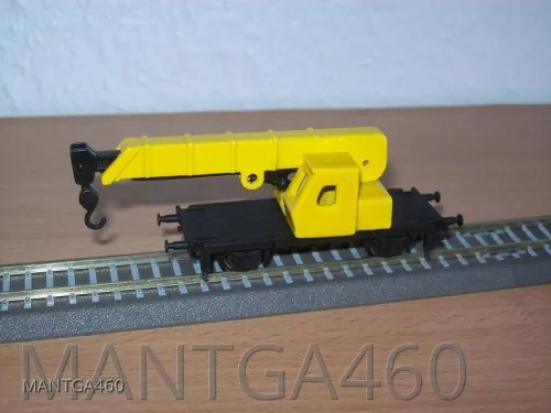 Als Zweites ein Kranwagen . Das Fahrgestell stammt von einem kurzen Startgüterwagen . Der farblich behandelte Kranaufbau von einem Siku Kran .