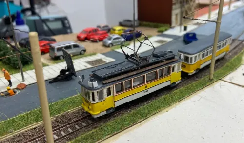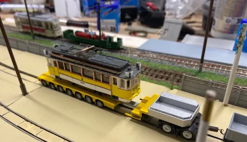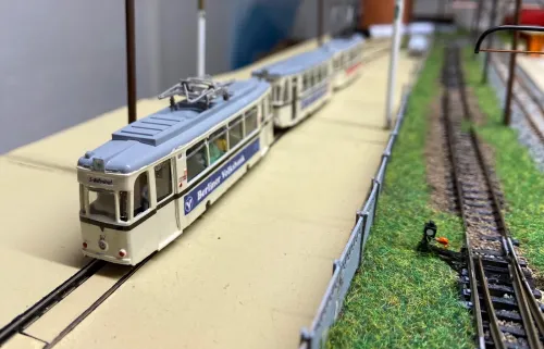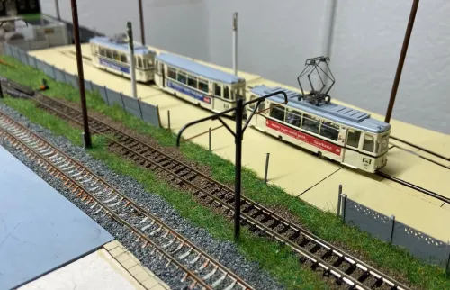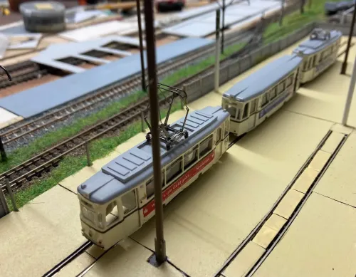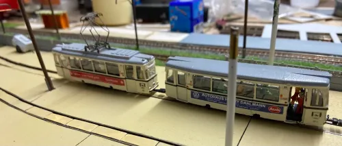 Jetzt wenden wir uns wieder den Rekowagen zu, ich hab die letzten Wochen am typischen Strausberger Straßenbahnzug der 1990er Jahre gebastelt. Der Triebwagen 4 ist motorisiert, der Beiwagen 002 ist 2.Wahl, weshalb er geöffnete Türen hat. Triebwagen 7 ist eigentlich auch ein Beiwagen. Im Industriebahnteil konnte ich ihn ablichten. Es folgen in den nächsten Wochen noch Probefahrten.