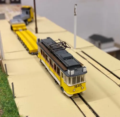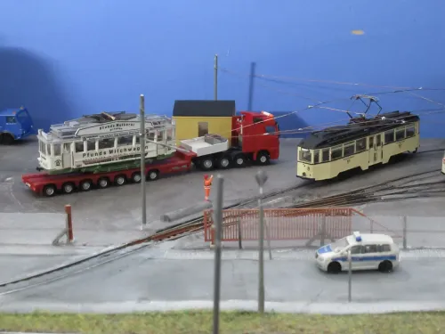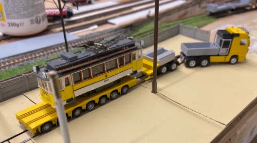 Hier konnte einer der Dresdner auf einem Tieflader beim Nachbarbetrieb von Strausberg gesichtet werden: