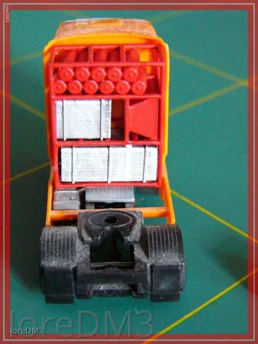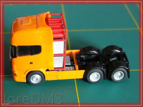 der Schwerlastturm hat eigentlich den Sinn, Dieseltank, Hydauliköltank und zusätzliche Luftbehälter unter zu bringen, wo bei der 4-achsigen (mittlerweile auch immer öfter 5 achsig) Zugmaschine kein Platz mehr ist.