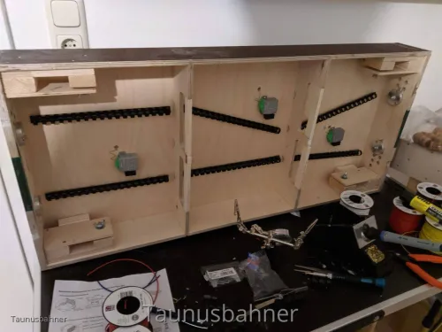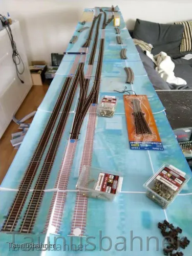 Wobei ich ein paar Sachen anders mache. Zum Beispiel kommen bei mir die Kopfstücke der FKTT/AKTT Norm an die Modulkästen. Auch werde ich die Kurvenradien von mindestens 600mm zu Hause in meiner Wohnung nicht einhalten können.