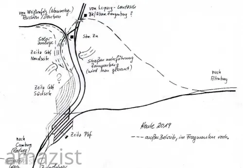 • Hallo,ja tolle Erinnerung! Habe von 84-97 in Zeitz gewohnt und in Teuchern als FDL gearbeitet. Früher waren in Zangenberg 2 Überführungsbauwerke, Richtung Theissen/TeuchernWeissenfels links Personenzuggleis aus Personenbhf Zeitz und gleich daneben das aus dem Güterbhf Zeitz. Letzteres war nach der Wende aber nur noch mit Schrittgeschwindigkeit befahrbar und es wurde bald stillgelegt,vom Gbf kam kurz vor dem Überführungbauwerk e eine Weichenverbindung zum Personenzuggleis rein.Zu DR-Zeiten war das Güterzugausfahrgleis sehr belastet>Schwere Kohlezüge mussten ja von Profen her im Zeitzer Gbf gen Weissenfels Kopf machen. Anbei ein Foto von 2012,wo ich mal meine Heimat besuchte - Teuchern Ausfahrt Richtung Zeitz.Auf dem Stellwerk Mitte Foto habe ich von 77-97 als FDL gearbeitet.