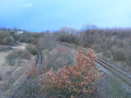 Links das frühere Einfahrgleis Zeitz Gbf Nord. in der Mitte das ehemalige Ausfahrgleis Gbf Nord Ri. Deuben-Teuchern-Weißenfels. Rechts das Streckengleis Weißenfels- Zeitz Pbf. und ganz rechts wäre das abgebaute Streckengleis Zeitz Pbf- Weißenfels zu finden.