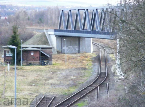 Im Hintergrund das Überführungsbauwerk der Güterbahn Zeitz- Tröglitz (ausser Betrieb und abgetrennt).