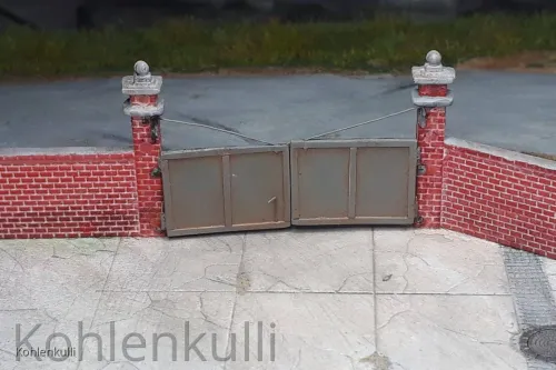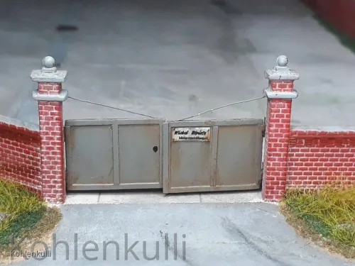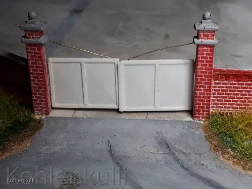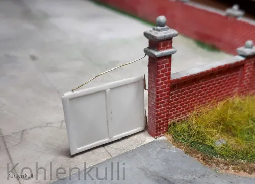 Dafür hab ich Platten und Profile von Evergreen genommen und kleinste Kupferrohre sorgen dafür, das die Tore auch beweglich sind.