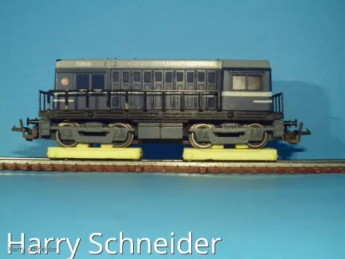 2. LocoBuggy mit (von Außen unsichtbarem) Drehschemel - geeignet für alle TT-Gleise, auch für Standard-Hohlprofil-Gleis (auch für ROKAL-Anlagen).