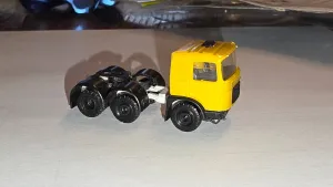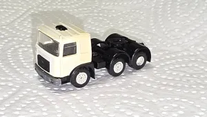 Der Film-LKW hatte ein in Wagenfabe lackiertes Unterteil des Fahrerhauses. Schwarz waren nur die Plasteeinsätze der Radkästen, siehe hier.