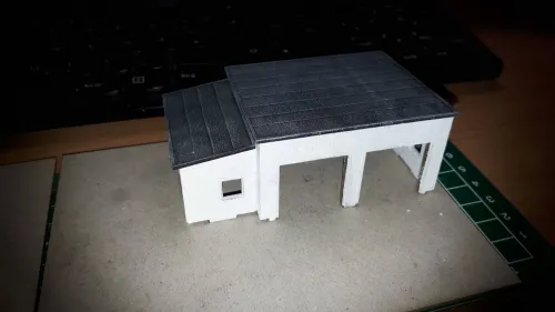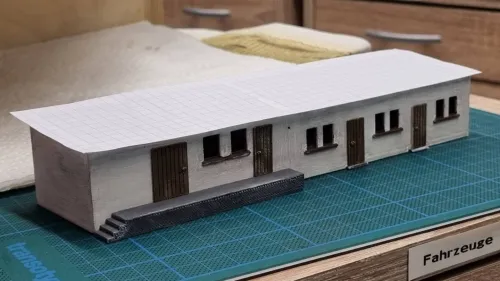 Also habe ich mir anhand dieser vorhandenen Bilder meinen Schuppen konstruiert, ausgedruckt und nun bin ich beim zusammenkleben und altern.