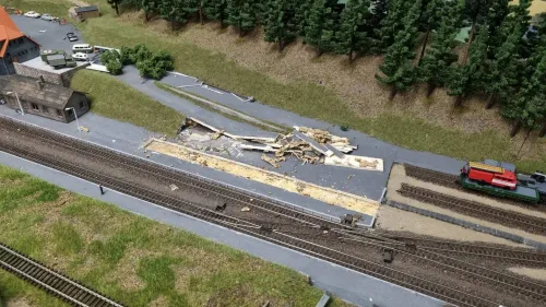 Ich habe ihn mal auf den Bahnsteig gestellt. Natürlich wird er noch nach hinten gerückt und er bekommt auch ein Gleis, allerdings ohne Weiche. Die ist dann wirklich schon weg. 😉