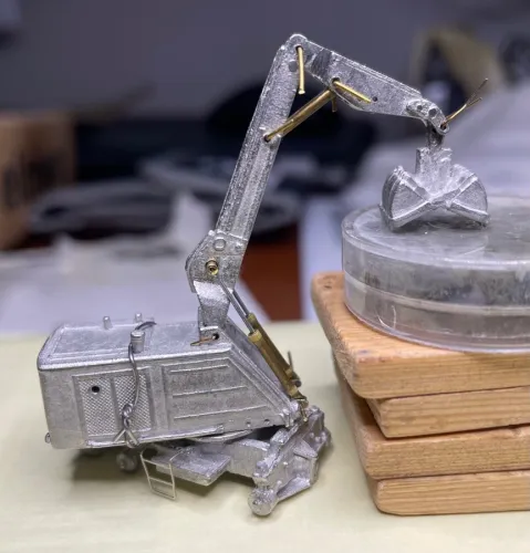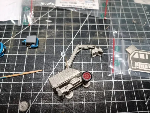 Nur ein kleiner Schnappschuss von heutigen Basteltisch. Am Jano-Bagger habe ich alle Löcher aufgebohrt um den beiliegenden Draht einzukleben. Arm und Schaufel sind somit beweglich.