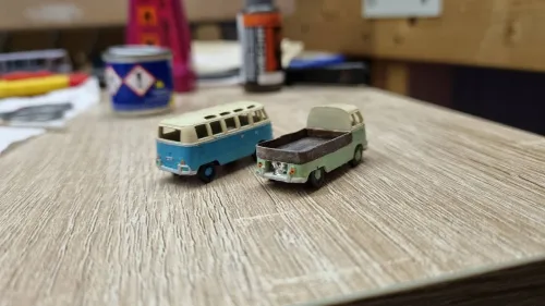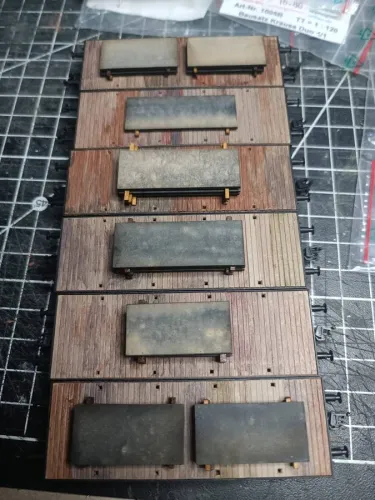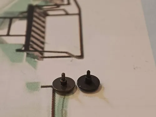 Für 2 Waggons, sprich 8 Puffer habe ich nicht einmal 10 Minuten benötigt, die Winzlinge habe ich mit einem Tropfen Plastikkleber von Revell fixiert.