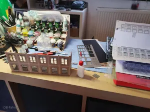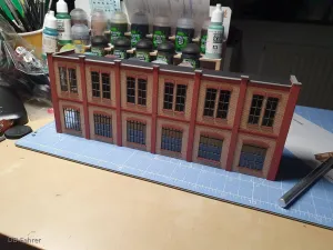 Nachdem ich etwas in Richtung Kulisse für meinen Industrieanschluss gesucht habe, bin ich bei Modellbahnunion fündig geworden mit der Fabrik-Kulisse. Also gleich mal ein Bausatz bestellt und gebaut. Das ganze werde ich innen noch ausstatten (da gibt es ja allerhand bei MU) und mit Licht versehen bevor ich die Rückwand anklebe (deswegen ist sie noch offen). Auch werde ich dnoch eine 2. oder 3. Halle dort mit unterbringen als Abschluss zum Rand hin, das dass Industriethema dort mehr zur geltung kommt.