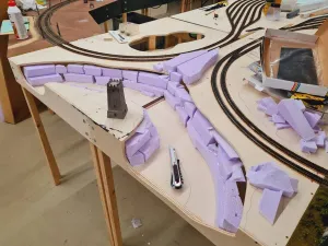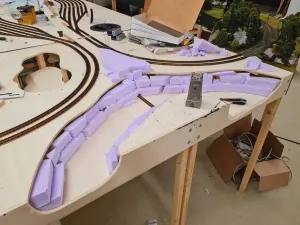 Und da mir ja die Gewichte ausgegangen sind und ich nebenbei meine Zeit trotzdem nutze geht es auch an meiner Skandinavischen H0 Anlage weiter :wall: Sie ist ein wenig gewachsen, jetzt wird gesägt, Landschaft angepasst, Styrodur in Massen verbaut, Kork und Gleise verlegt und Oberleitung und Signale ausgetauscht....