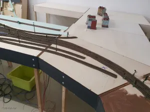 Am Wochenende wird der Schotter dann geklebt der im Bahnhof jetzt komplett liegt (nachdem ich dort die letzten Gleise vor ein paar Wochen gelegt hatte).
