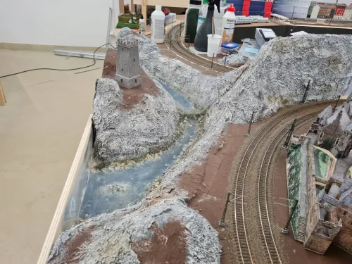 Trotzdem habe ich angefangen den Fluss zu gestalten und nach und nach das Wasser einzulassen (es fehlt aber noch genügend).