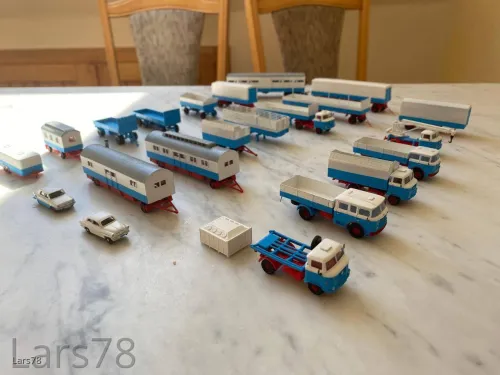 :hand:So wir waren im Ausland und haben ordentlich Divisen für unsere Darstellung bekommen und konnten uns dadurch neue Fahrzeuge anschaffen. 2 Volvo F88Pritsche und Pallen Zug, 3 Skoda mit unterschiedlichen Dächer sowie Zusatz Aggregaten und wen mal eine Panne ist mit fester abschleppe Öse sowie 2 W-50 davon ein Spezial Fahrzeug mit Technischem Aufbau.