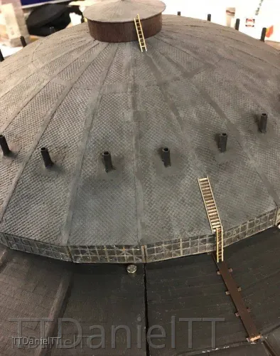 Zum Einen wurden die ersten Geländer im Rundhaus montiert und zum Zweiten wurde Probehalber der Aufstieg auf die Kuppel dargestellt.