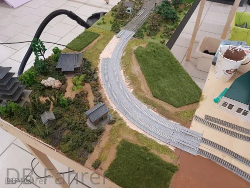 Da meine Vorliebe zu den Shinkansen wuchs, musste natürlich irgendwann etwas größeres her. So wurde also Geplant und es entstand der Plan einer fast 7m langen Anlage - Little Tokio, bestehend aus 7 Segmenten und 4 Stromkreisen, 2 davon nur als Shinkansen Trasse.